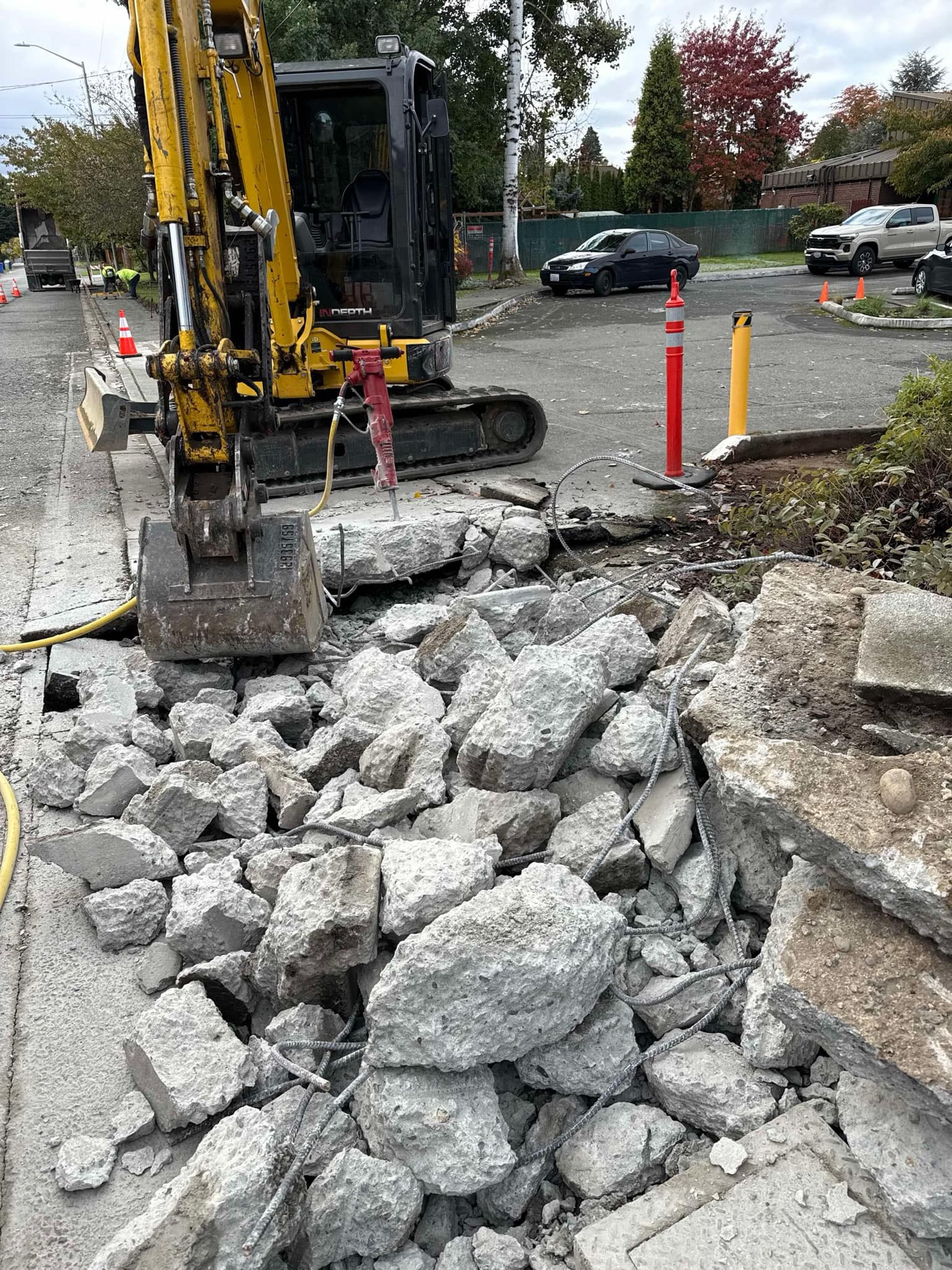 Concrete demolition involves breaking up and removing hardened concrete surfaces such as driveways, sidewalks, patios, foundations, and slabs. Beyond simply breaking concrete apart, professional demolition prepares your site for the next construction phase by removing debris, protecting surrounding areas, and ensuring the ground is ready for new work. Every project begins with a thorough evaluation of the concrete structure and surrounding conditions to determine the safest and most efficient methods.
